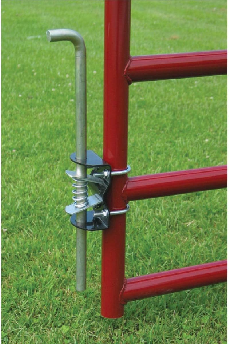 Painted Red, Gate Anchor, For Round Tube Gates 1-3/4" To 2" Outside Diameter, Holds Livestock Gate Open In Any Position, Helps Prevent Gate End From Swinging & Sagging.